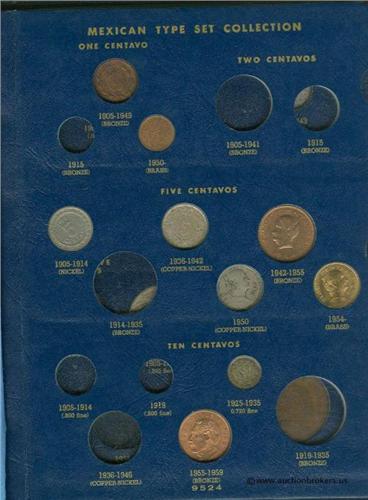Mexico Type coin collection starter set 22 coins; Includes several large silver coins in Whitman album