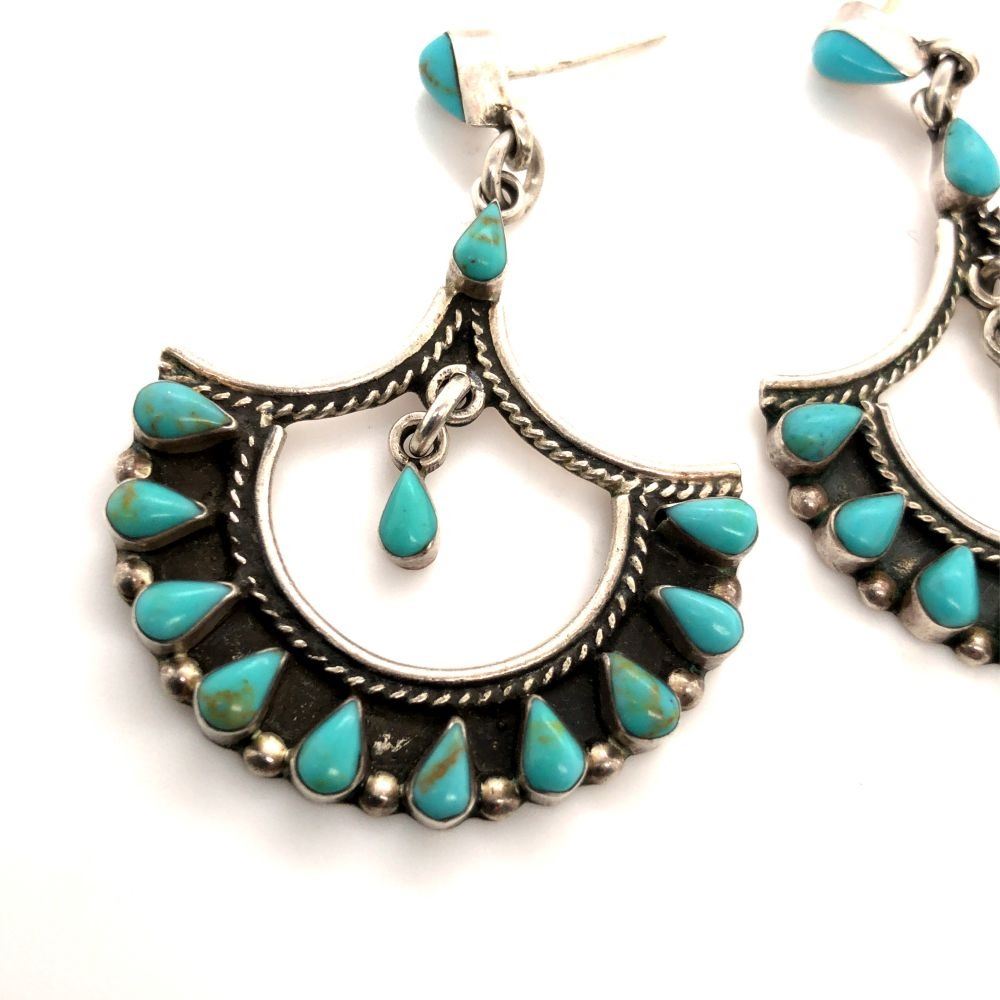 Beautiful Mexico Vintage post fan shaped bezel set Kingman Turquoise Earrings L 2 " x W 1 1/4 "
