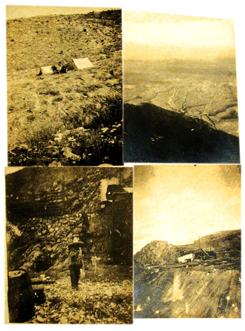 Four black and white photos of unidentified Mexico mine, c1900. Included is one of man in sombrero and two of large mine.