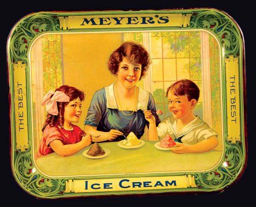 Meyers Ice Cream Tin Serving Tray, has touch up around the edge otherwise excellent condition, 13 1/4 x 10 1/2 inches.