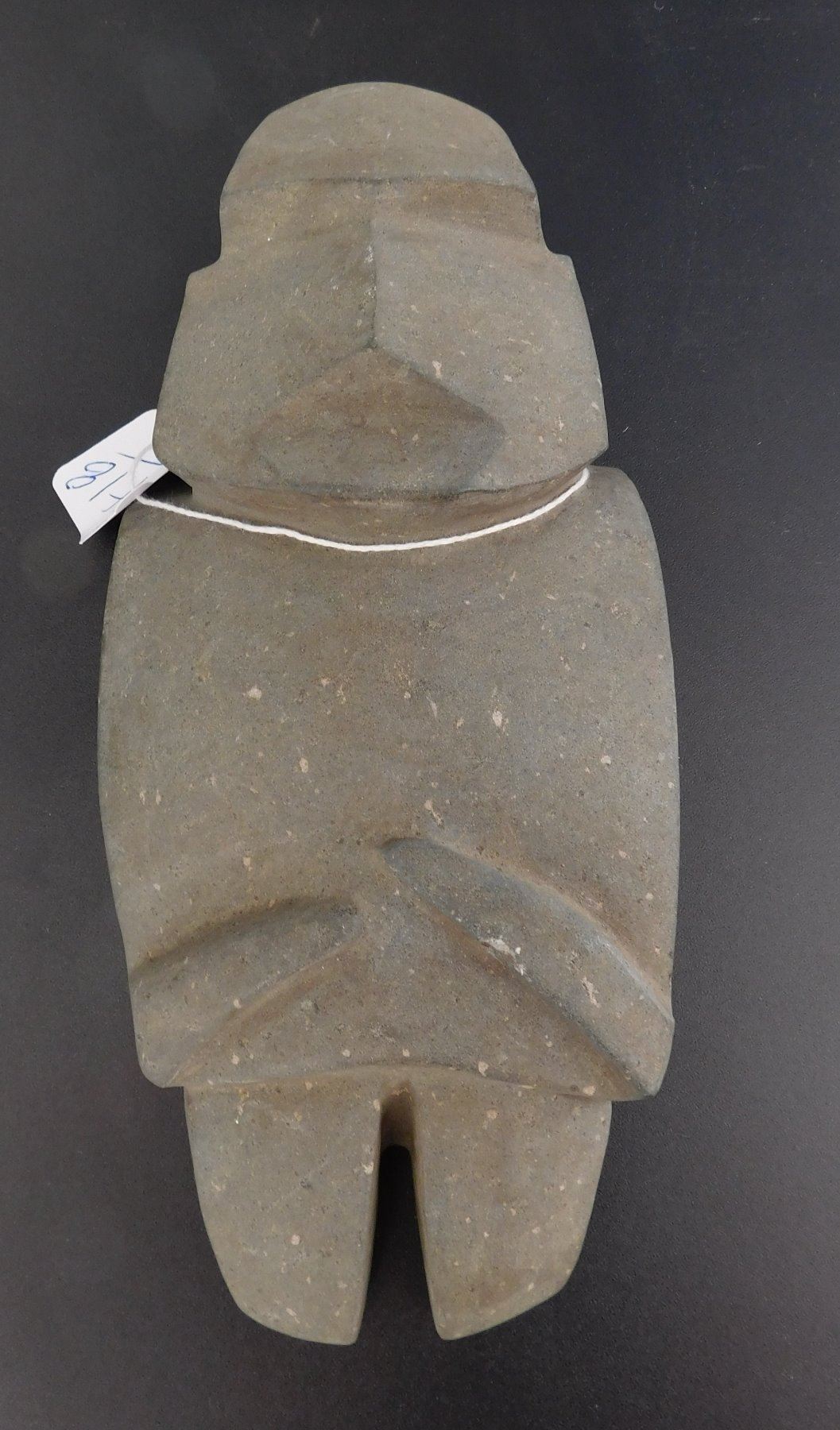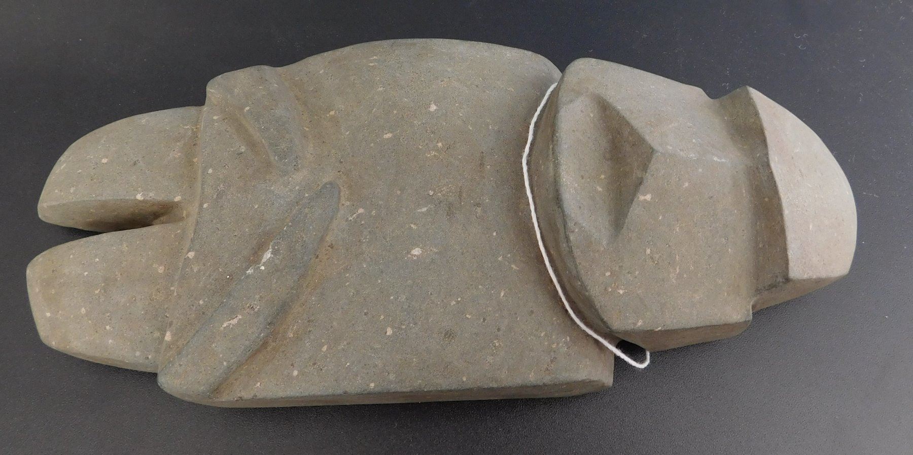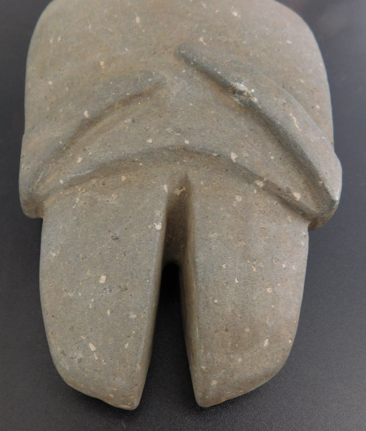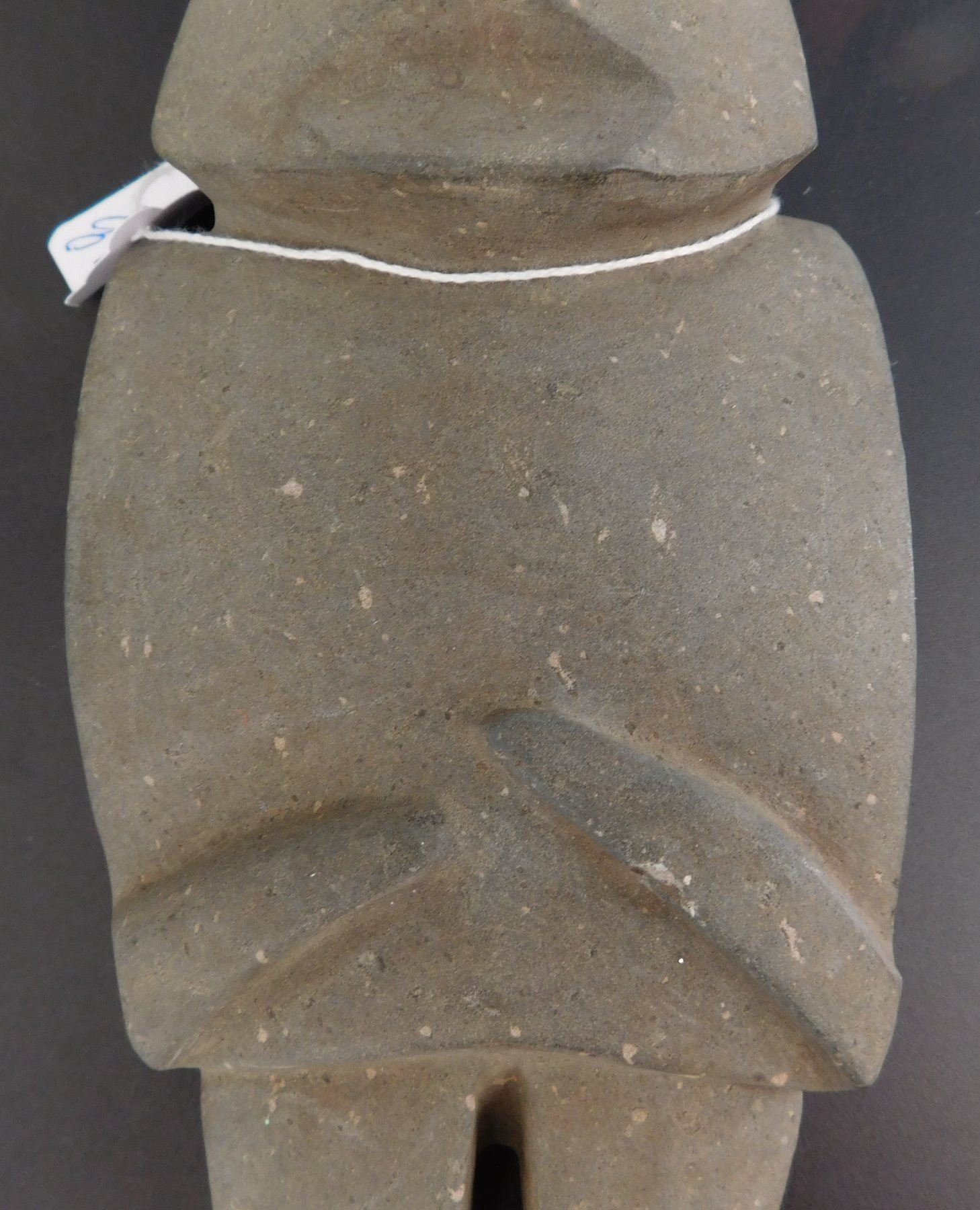 Mezcala Figure, pre-Columbian item. Made of basalt, the item measures 9" x 4" x 2 1/2". Guerrero, Mexico. Broad piece. Condition: Good, see images. Shipping: $35.00 w/insurance and signature, due to value.