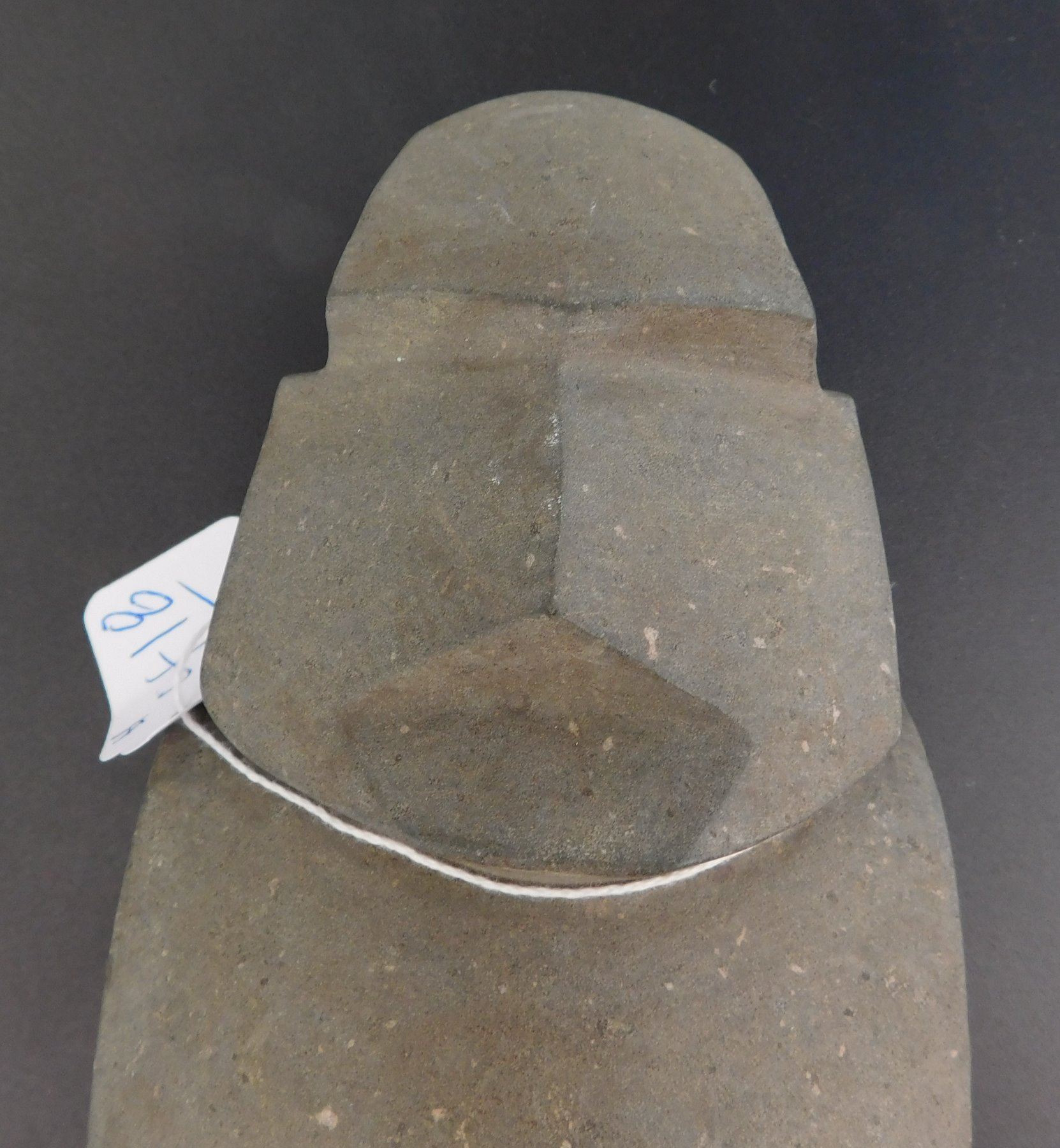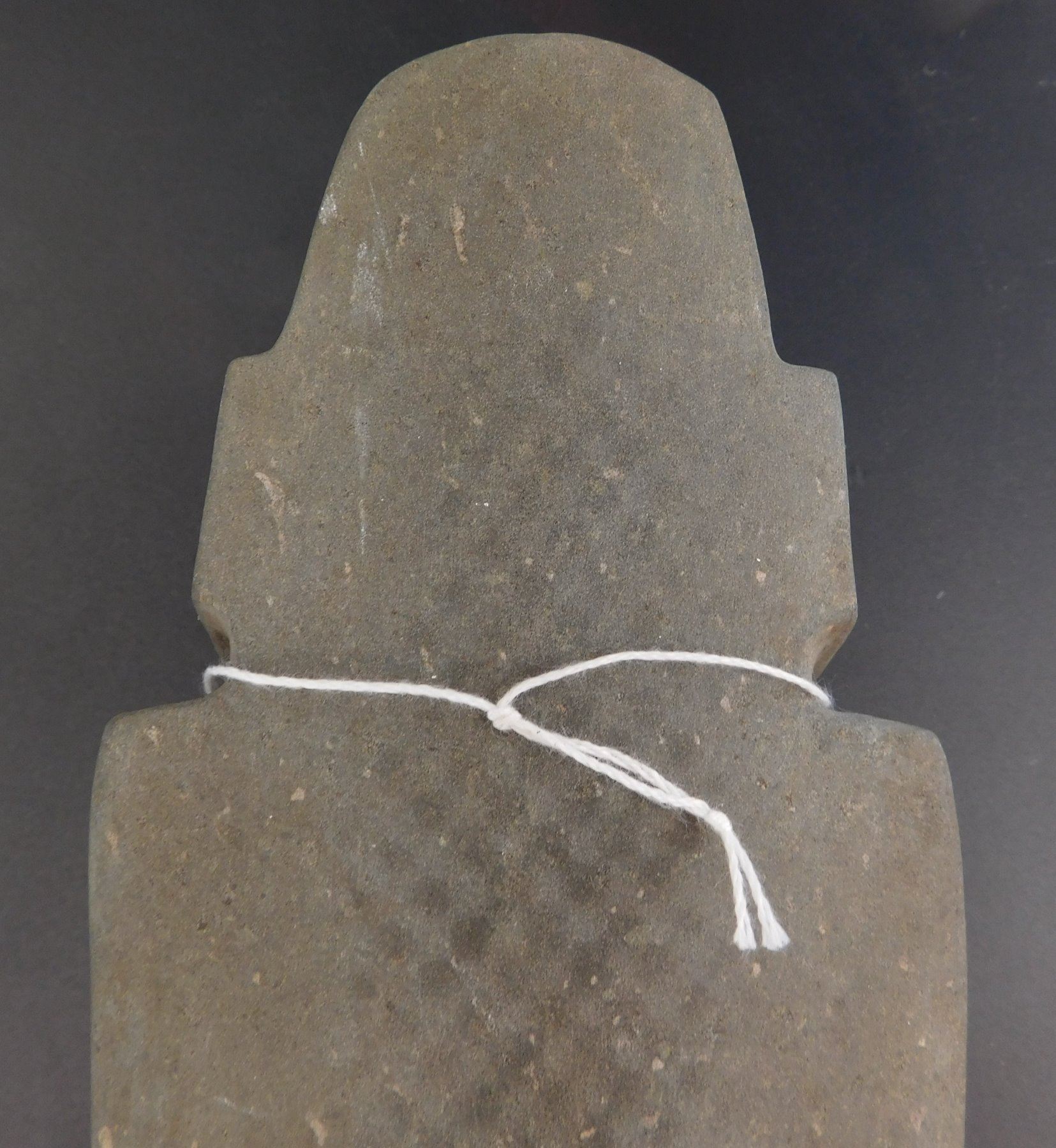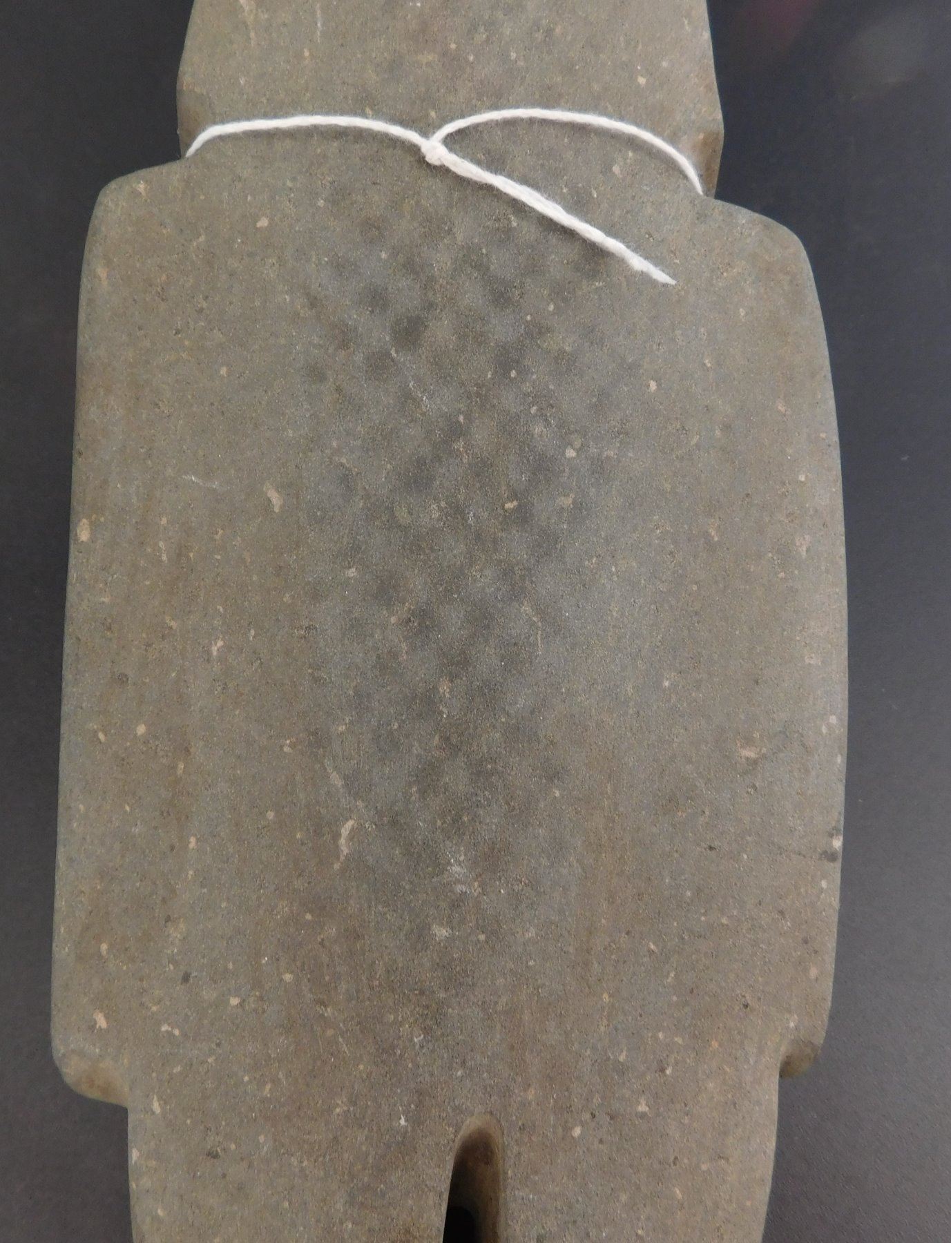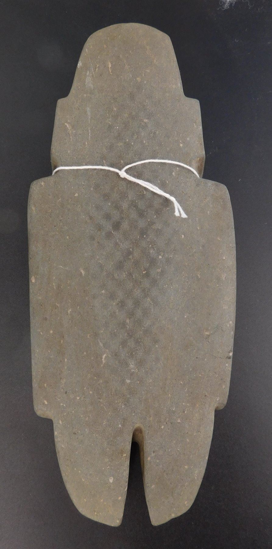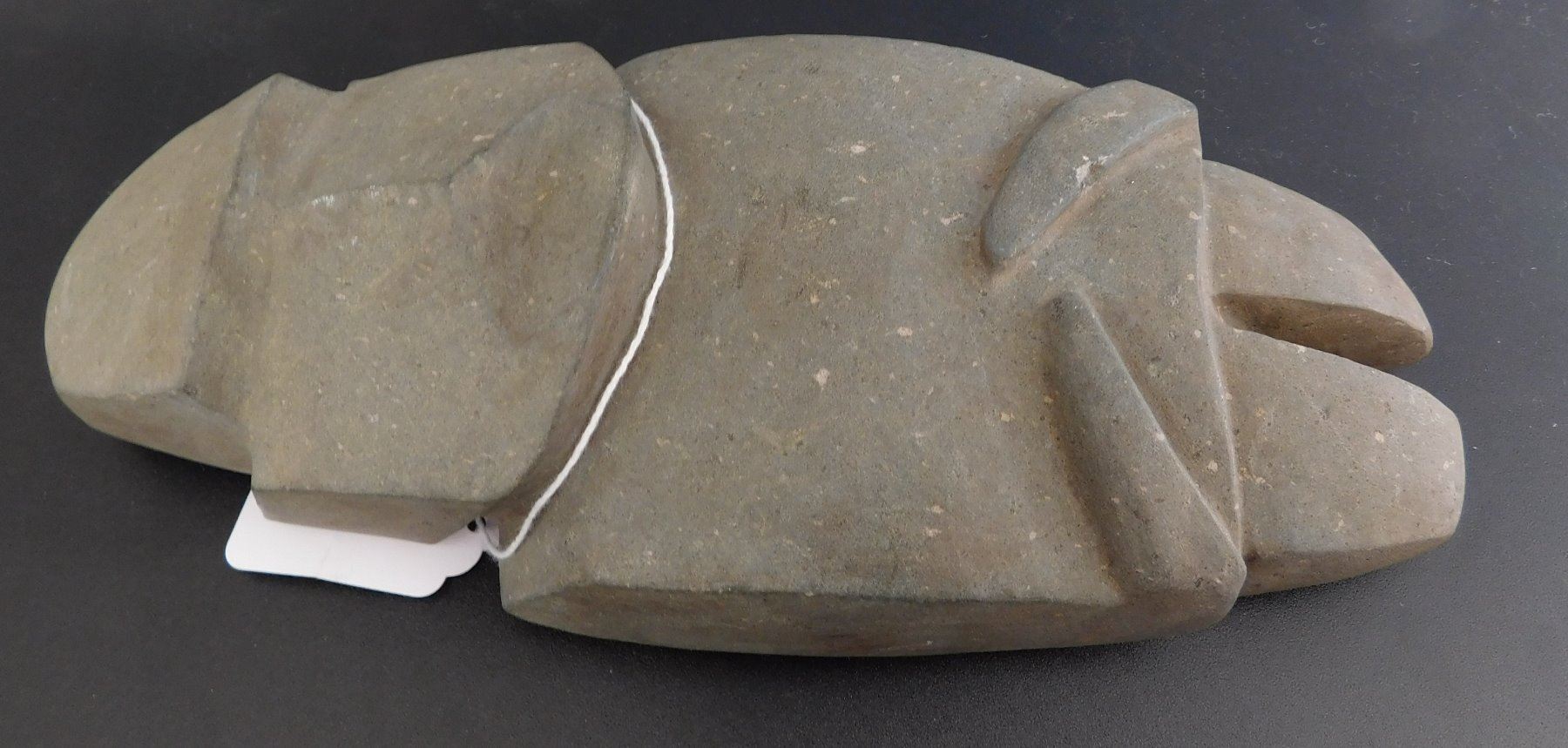 Mezcala Figure, pre-Columbian item. Made of basalt, the item measures 9" x 4" x 2 1/2". Guerrero, Mexico. Broad piece. Condition: Good, see images. Shipping: $35.00 w/insurance and signature, due to value.