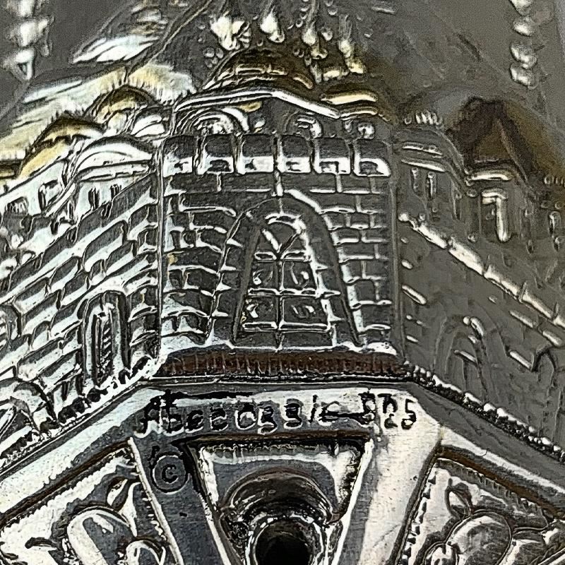This is a sterling silver electroform mezuzah case by Raphael Abecassis. Accompanied by a certificate of authenticity, it measures approximately 1.8" x 7" x 0.8".