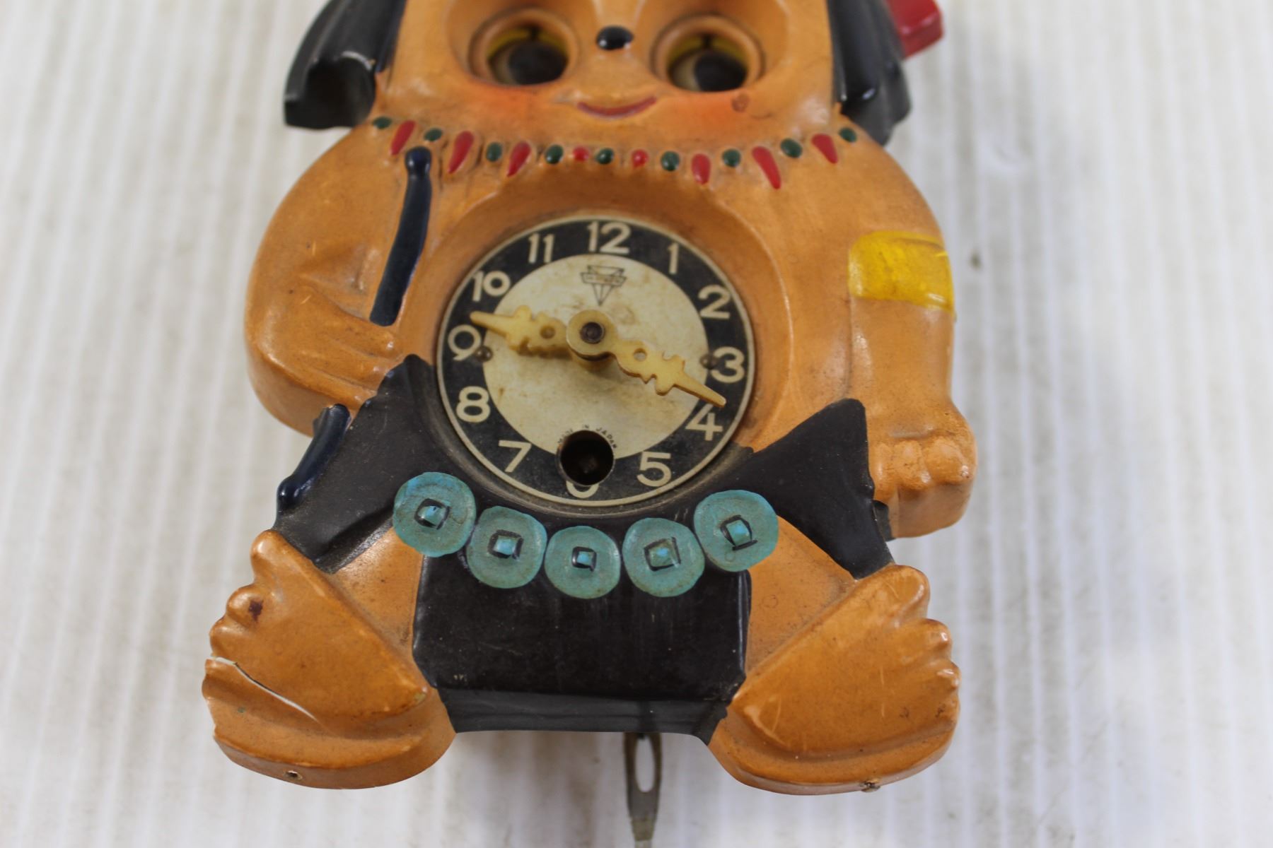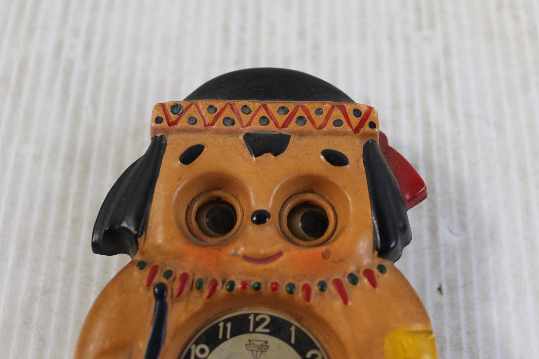 Mi Ken Aboriginal Clock with Moving Eyes - Consignor Says Working