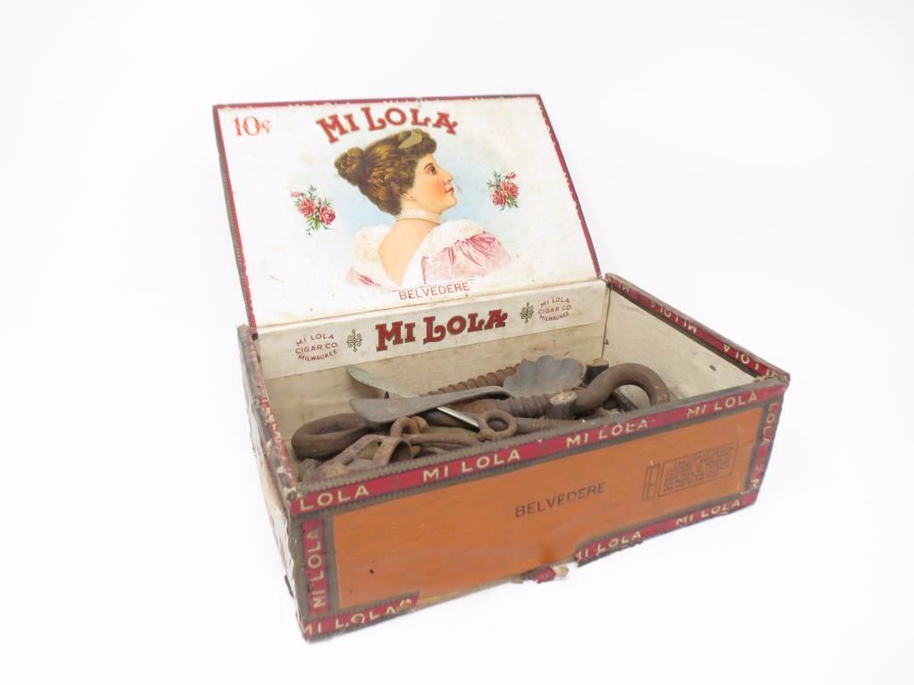 Mi Lola Cigar Box Full of Miscellaneous Items