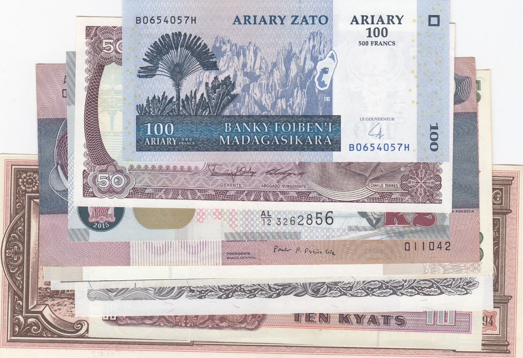 Mi Lot, 10 different banknotes. AUNC/ UNCbr/Belarus, 10000 Rubles,1994; Zambia, 2 Kwacha, 2015; Burm