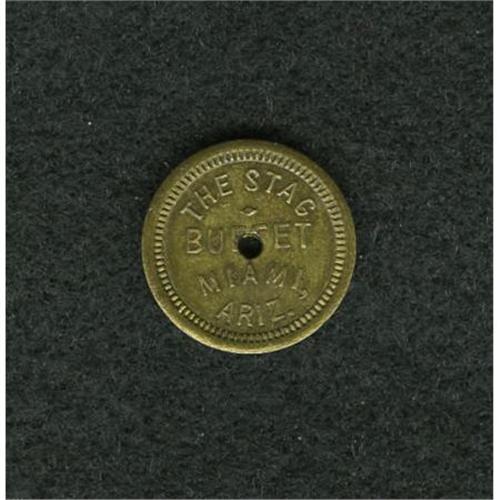 <B>The Stag Buffet, Miami, Arizona.</B></I> Brass, 21 mm. Issued by The Stag Buffet, Miami, Ariz., good for 6-1/4 cents in trade.<BR><BR><b>Shipping:</b> Coins & Currency (<a target="_blank" href="http://www.heritageauctions.com/common/shipping.php">view shipping information</a>)
