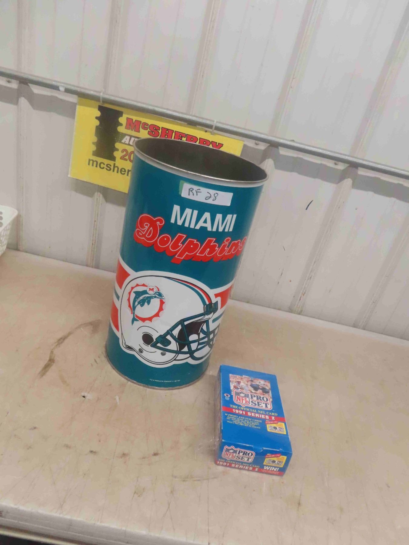 Miami Dolphins Garbage Can , NFL Pro Set 1991 Series 1 Box