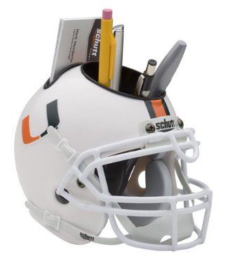 Schutt Sports NCAA Licensed Helmet Desk Caddy in the Miami Hurricanes logo. Perfect for the home or work office, this attention-grabbing desk ornament leaves no doubt to guests and business acquaintances who's your team. Fill it with business cards and team-colored pens, but be prepared to talk Hurricanes football when people roll in.