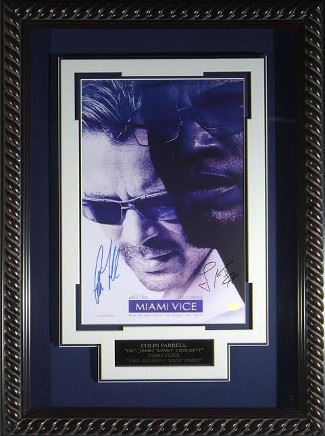 Miami Vice is a 2006 American action film about two Miami police detectives, Crockett and Tubbs, who go undercover to fight drug trafficking operations. The film is an adaptation of the 1980s TV series of the same name, written, produced, and directed by Michael Mann. The film stars Jamie Foxx as Tubbs and Colin Farrell as Crockett, as well as Chinese actress Gong Li as Isabella.This is an signed Publicity Masterprint 11x17 inch movie poster with museum Quality Custom Rope Framing as shown to an overall size of 22x30. Jamie Foxx & Colin Farrell have signed this poster. The perfect addition to complement any Home Theater Collection. Witnessed, Examined, and Certified Authentic (Lifetime) by Millionaire Gallery, Inc.