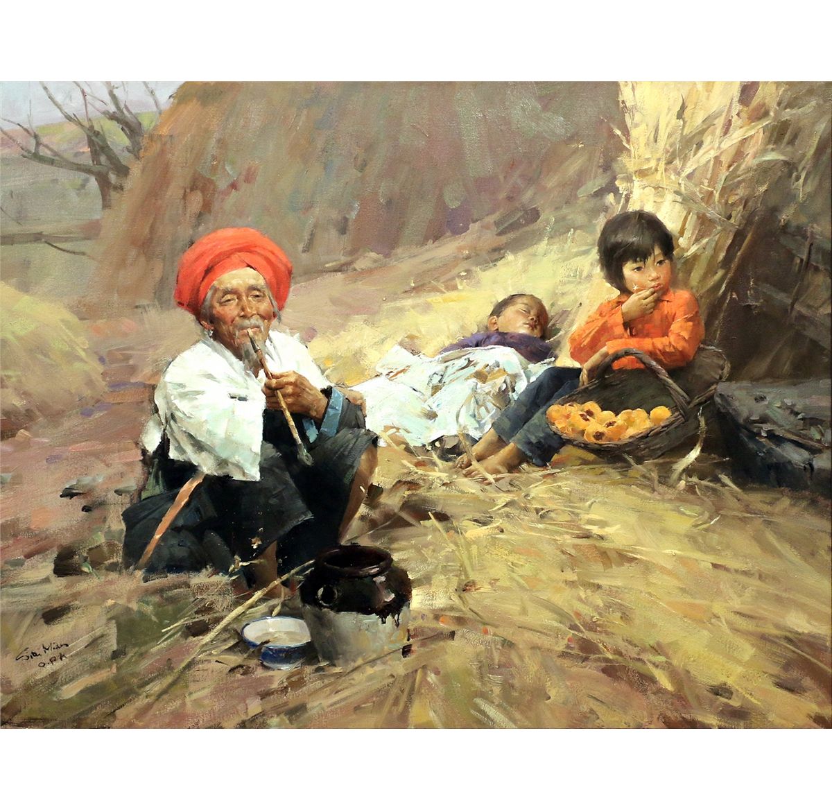 Mian Situ (1953 - ). Pleasures of the Harvest. 24" x 30" oil on canvas. Signed lower left: Situ Mian O.P.A.