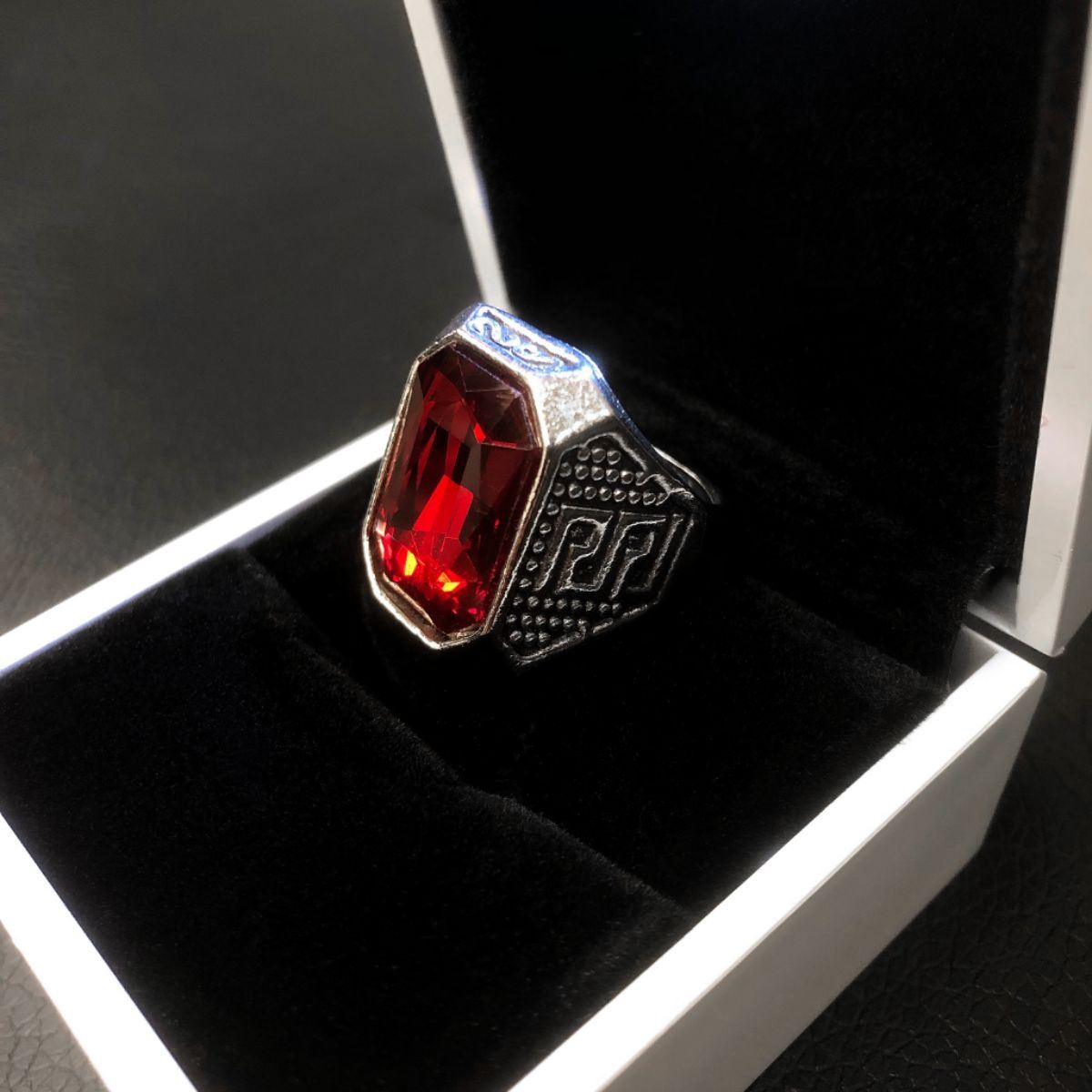 Large Elegant Semi Precious Red Stone Ring, Great condition, Comes in White Enameled LED Ring Box. View Photos For Further Inquiry.