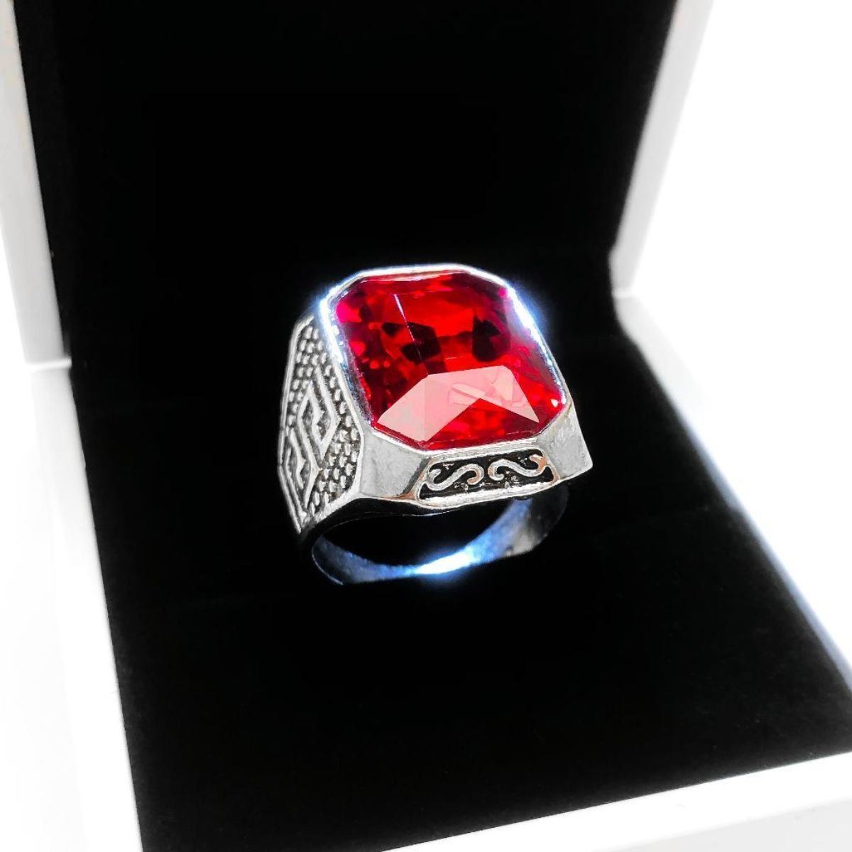Large Elegant Semi Precious Red Stone Ring, Great condition, Comes in White Enameled LED Ring Box. View Photos For Further Inquiry.