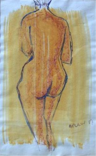 Michael Argov, 1920 - 1982, Nude from the Back, 1957, Watercolor, 50x30 cm, Signed and dated., , , , ,