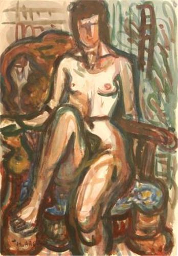 Michael Argov, 1920 - 1982, Nude, 1944, Watercolor, 50x35 cm, Signed and dated, , , , On the reverse another "nude", pencil drawing,