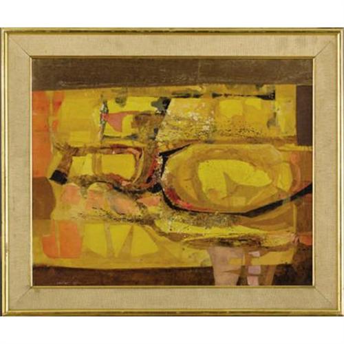 <B>MICHAEL AYRTON </B></I>(British 1921-1975)<BR><I>Abstract Landscape</B></I>, 1964<BR>Paper, oil and fabric collage on board<BR>17-3/4 x 22 inches (45.1 x 55.9 cm)<BR>Signed lower left: <I>Michael Ayrton Sept. 64</B></I><BR> <BR>Ayrton was an important English artist who worked as a painter, sculptor, and printmaker, as well as a critic and novelist. He was a designer and illustrator for books by Wyndham Lewis and William Golding. Ayrton's works are currently in the collections of the Tate Gallery, London, National Portrait Gallery, London and the Museum of Modern Art, New York.<B>Condition Report:</B> Excellent condition<BR><BR><b>Shipping:</b> Requires 3rd Party Shipping (<a target="_blank" href="http://www.heritageauctions.com/common/shipping.php">view shipping information</a>)