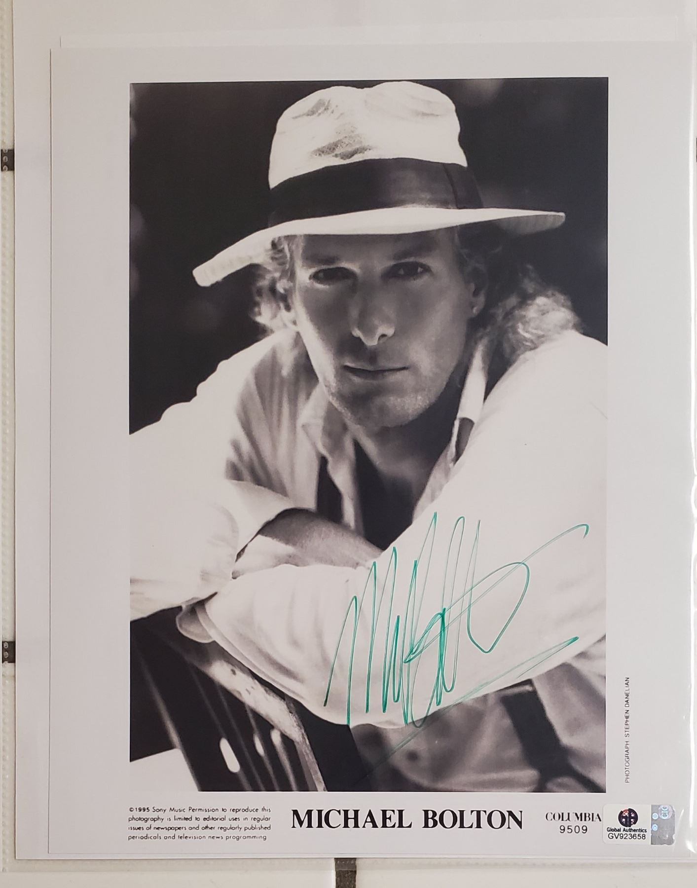 An 8” x 10” photograph signed by Michael Bolton. Global Authentics authenticated the autograph, providing a COA numbered GV 923658.