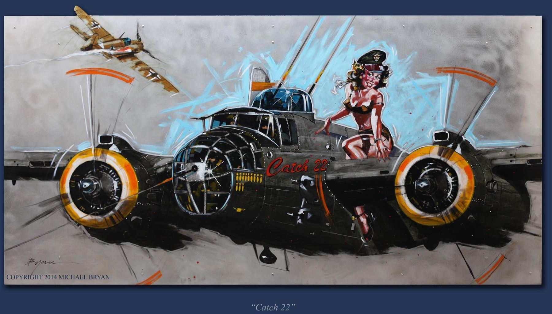 Michael Bryan "Catch 22" is a 20x40" Unique handworked giclee on canvas 1/1 Features the famous WWII twin-engine B-24 fighter .