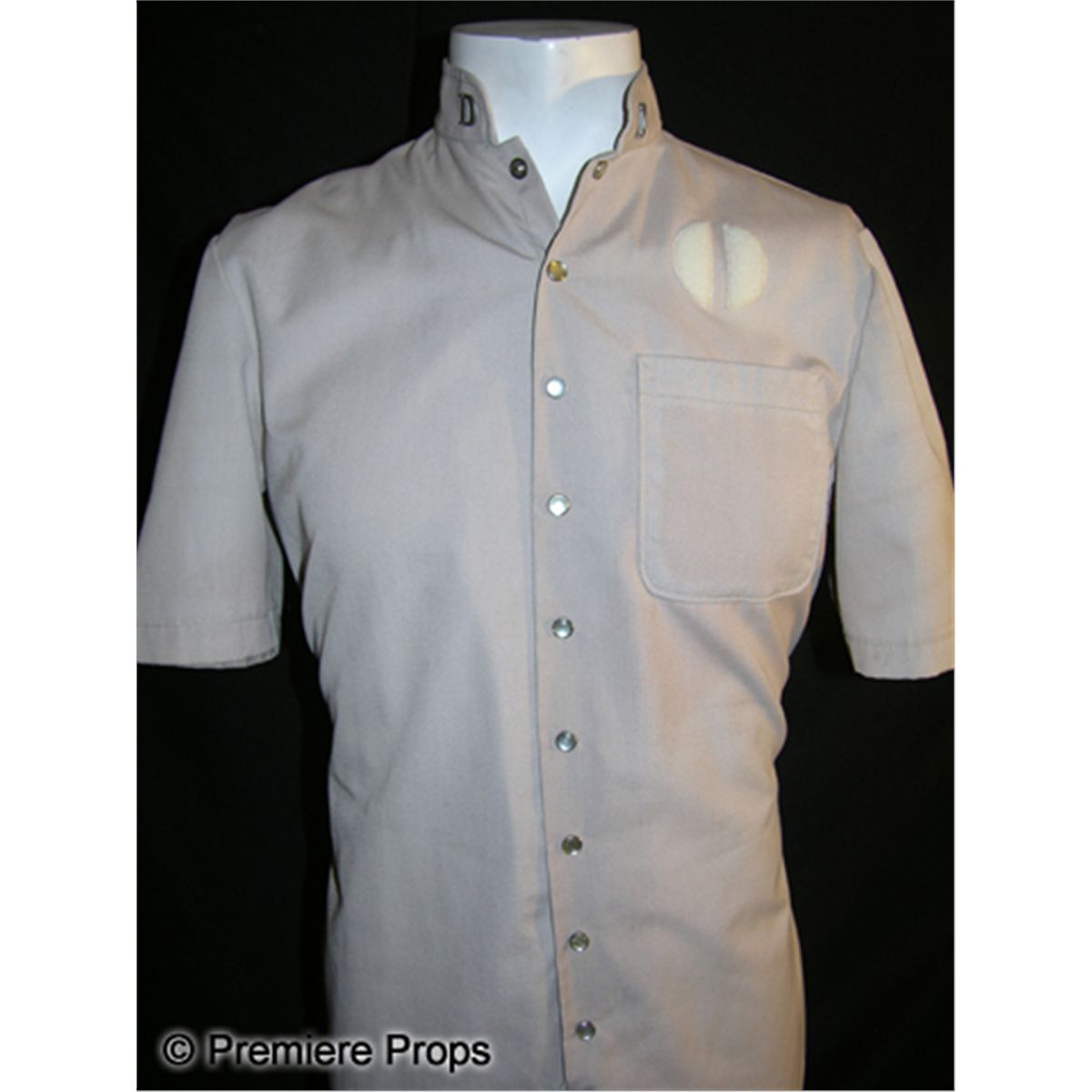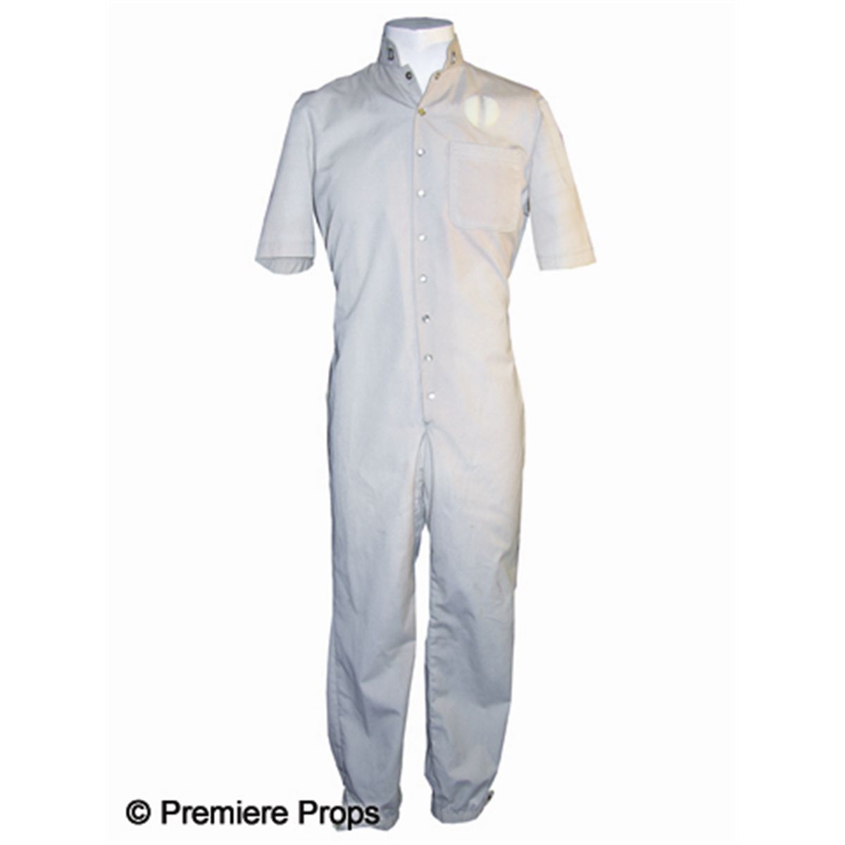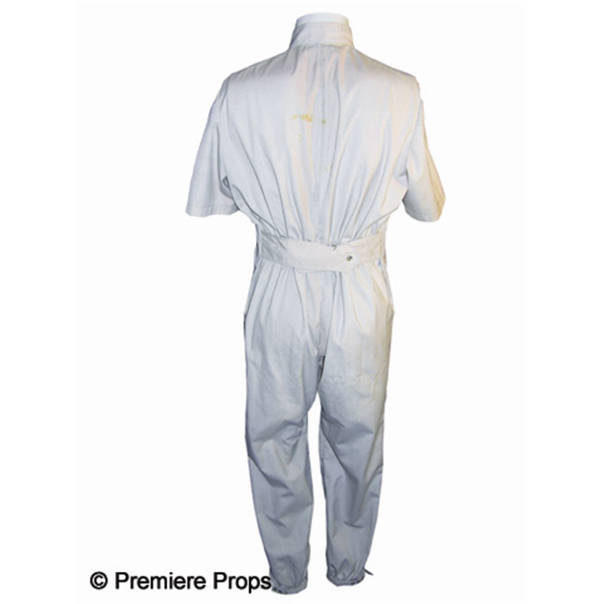 Crème colored jumpsuit worn by Michael C. Gwynne as Dr. Morris, one of the Babel Hospital physicians, in The Terminal Man (1974). Includes two metallic D insignias attached to the collar and a Babel patch on the chest. Inner collar has a label with a handwritten M.G.. The film starred George Segal as a man given to violent fits of psychopathy who undergoes experimental treatment with computer technology.