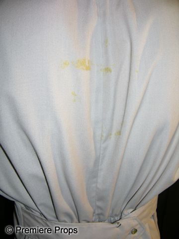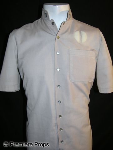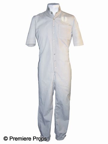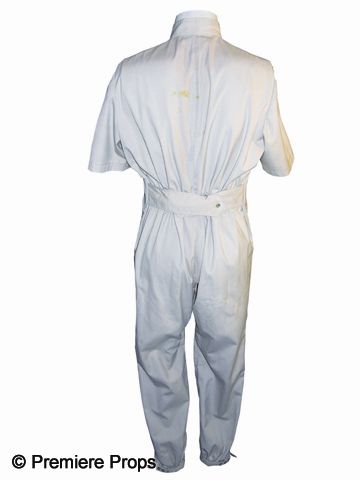 Crème colored jumpsuit worn by Michael C. Gwynne as Dr. Morris, one of the Babel Hospital physicians, in The Terminal Man (1974). Includes two metallic D insignias attached to the collar and a Babel patch on the chest. Inner collar has a label with a handwritten M.G.. The film starred George Segal as a man given to violent fits of psychopathy who undergoes experimental treatment with computer technology.