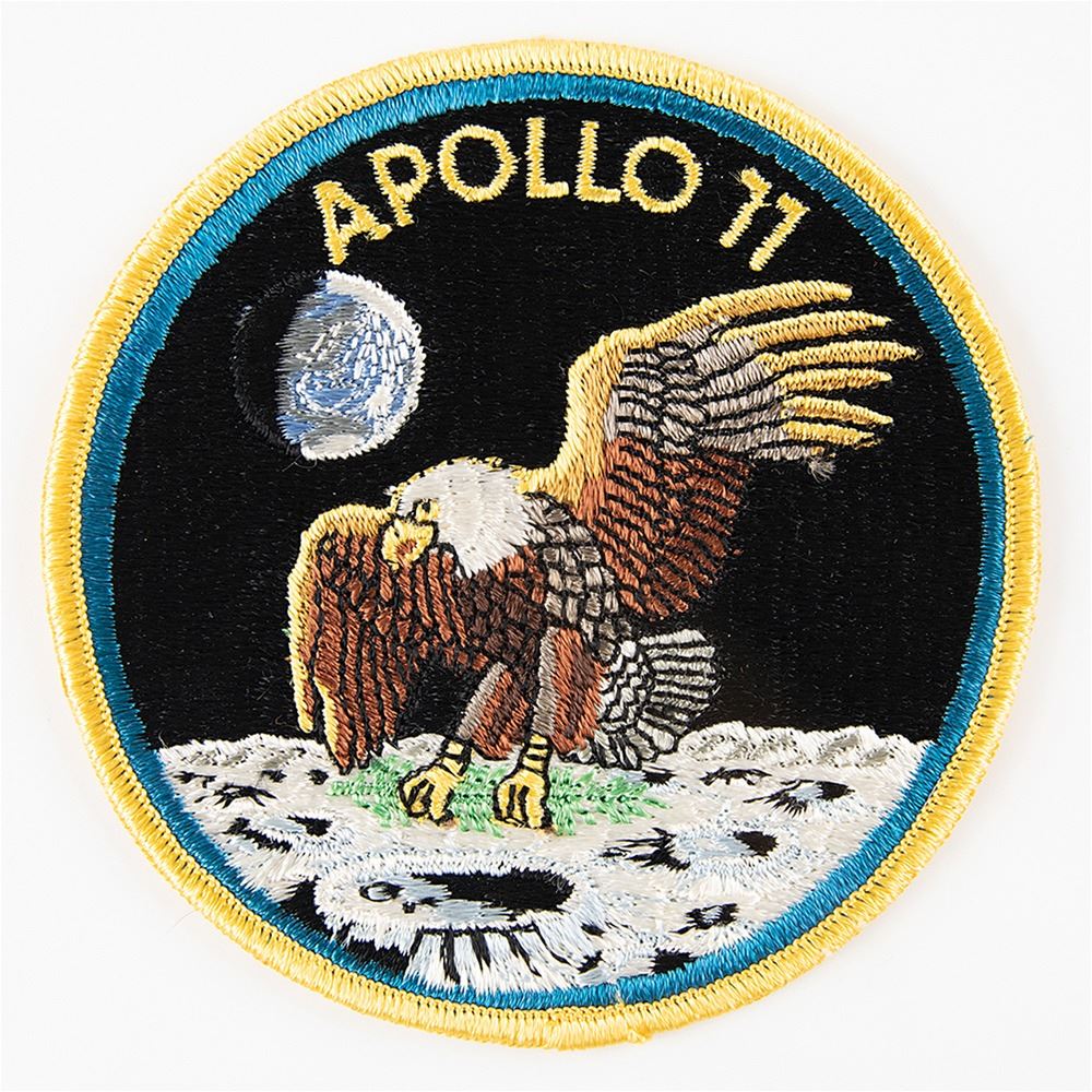 Very rare Apollo 11 Biological Isolation Garment patch, 4è in diameter, from the personal collection of Apollo CMP Michael Collins, who has signed the reverse in black felt tip. This patch design was worn by the crew on their Biological Isolation Garments at recovery time and on their post-flight blue jump suits. In fine condition. Only a small number of these patches were produced; they were made available exclusively to the crew and NASA employees. Accompanied by a certificate of authenticity from Astronaut Central.