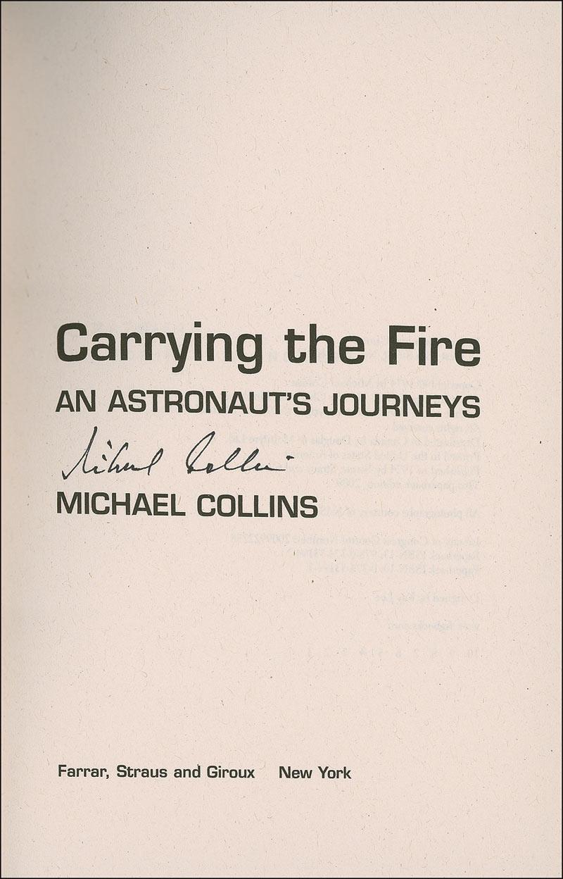 Signed book: Carrying the Fire. 40th Anniversary Edition. NY: Farrar, Straus and Giroux, 1974. Softcover, 5.5 x 8.25, 478 pages. Signed on the title page in black ink. In very fine condition. Pre-certified Scott Cornish and RRAuction COA.