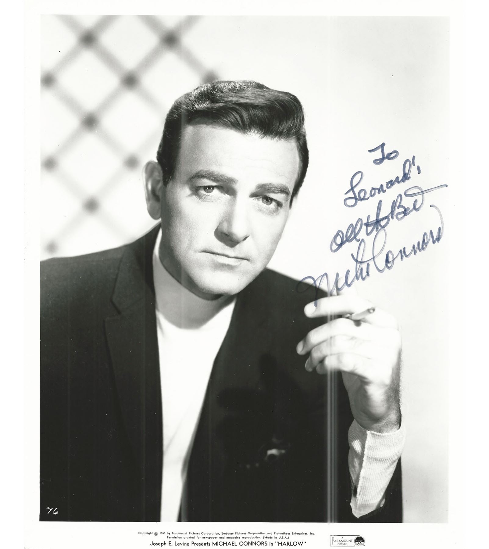 Michael Connors signed photo. 8x10 inches