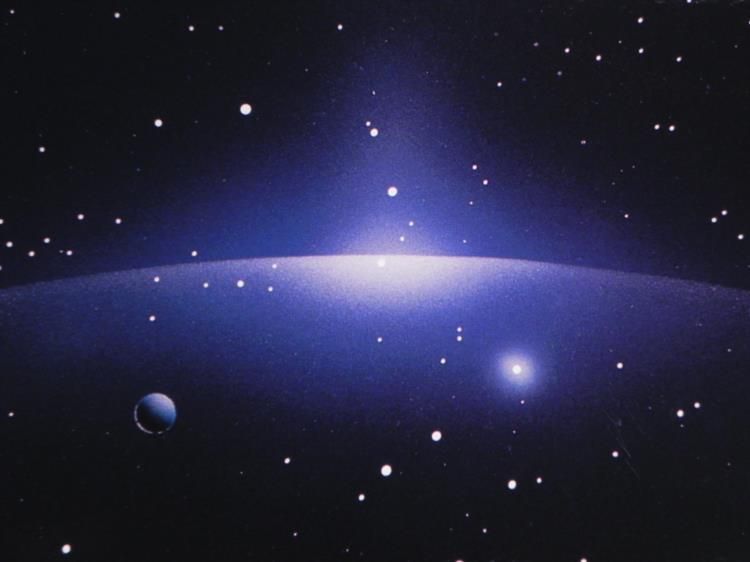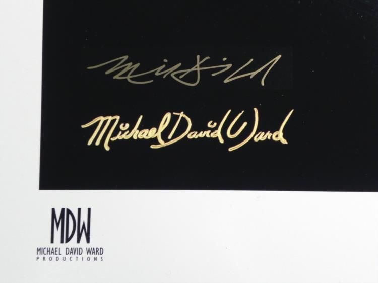 This art print portrays the highly classified Prometheus-class starship, gliding along stealthily through deep space, amdist colorful planets. Artist: Michael David Ward Signature: In gold paint pen, lower left Title: Prometheus Medium: Lithograph on high gloss paper Edition: 369/950 Year published: 1999 Condition: Excellent; has been stored rolled; some minor surface marks Certificate of Authenticity: From Hasson Fine Art, signed by the company president