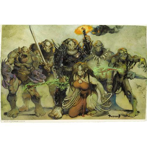 Michael Dubisch brings the Orc pantheon to brutal life in this atmospheric illustration, which was published on page 149 of <B>Faiths and Pantheons</B></I>. Rendered in mixed media on heavy paper, the image area measures 22.75" x 14.5". In Excellent condition. Signed by Michael Dubisch at the lower left.<BR> <BR><BR><b>Shipping:</b> Large Flat (<a target="_blank" href="http://www.heritageauctions.com/common/shipping.php">view shipping information</a>)