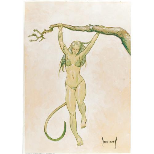<B>Michael Dubisch - "Tree Elf" Illustration Original Art (2006).</B></I> Michael Dubisch's fabulous fantasy female awaits your bids -- don't leave her hanging. This mixed-media on paper wonderment has an overall size of 14" x 20", and the art is in Excellent condition.<BR><BR><b>Shipping:</b> Flat Material, Large (<a target="_blank" href="http://www.heritageauctions.com/common/shipping.php">view shipping information</a>)