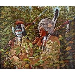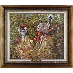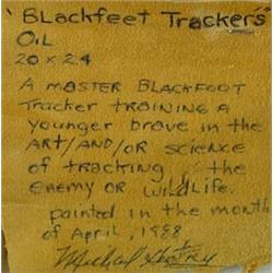 Michael Gentry (1941-1994) (Washington) Oil on Canvas, "Blackfeet Traders," 1988, 20" x 24", signed lower right, Est $2,000 - $3,000