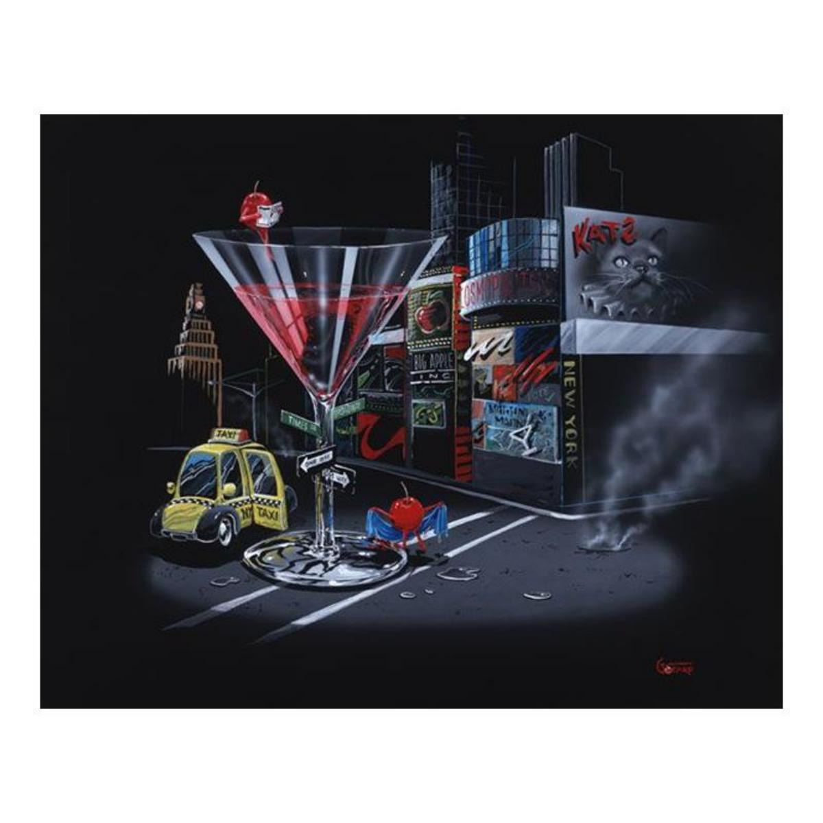 "Cherry Cosmo II" is a numbered limited edition giclee on canvas, from a sold out edition, by Michael Godard bearing the artist's authorized signature. This piece is gallery wrapped and includes a Certificate of Authenticity. Measures approximately: 28" x 35". Reference #: 238244