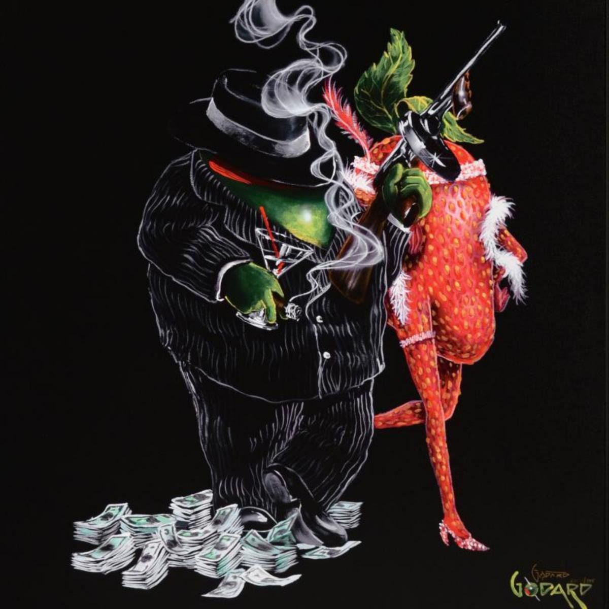 "Gangster Love" is a limited edition giclee on canvas, numbered and bears Godard's authorized signature. This piece comes framed. Includes Letter of Authenticity. Measures approx. 32" x 39" (frame), 28" x 35" (image). This item requires special handling and may have a longer than usual turnaround. Reference #: 244585.
