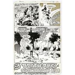 Michael Golden and Joe Rubinstein - Original Art for Micronauts #2, page 31 (Marvel, 1979). Sometimes size really does matter! Two Battle Cruiser pilots find out the hard way, in this page, penciled by the original series artist, Michael Golden and inked by Joe Rubinstein. Having just recently landed on Earth, the 6-inch tall Micronauts befriend a boy, Steve Coffin, who now stands alone in what once was his backyard, in this final page from Micronauts #2. From the story, "Earth," written by Bill Mantlo, comes this gorgeously rendered page, which measures 10" x 15". There is a stain in the second panel, due to aged zipatone, a blue-line editorial mark in the third panel, and some limited white-out usage, but overall the work is in excellent condition. Signed by Joe Rubinstein. Important notice: Heritage usually auctions material at the rate of 200-250 lots per hour. On some occasions eBay Live bid software or the Internet may not be able to keep up with the pace of the auction. We recommend placing a realistic absentee bid now as insurance to avoid disappointment. Occasionally the auctioneer may eliminate or reject an eBay Live bid, and the auctioneer may also reopen a lot after the close of the eBay live bidding (usually because we missed an audience bid), and may reject your bid even if it shows you as the winning bidder. By bidding via eBay Live, you agree that Heritage may award the lot to another bidder at its sole discretion under the circumstances described above or any other reasonable circumstances. Since eBay bids are not shown to us until we open the lot on the floor, we treat those bids just like floor bids. In most cases the floor responds before the eBay bid is presented to us, due to Internet lag time, so for consistency we have made it a policy that floor bids are always considered first over tie eBay live bids. Also please note that all Heritage lots purchased through eBay Live carry a 20% Buyer's Premium. Please make sure you read the Terms and Conditions before you bid.