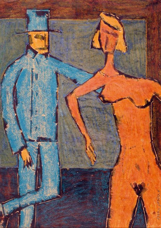 Michael Grobman, Russian, Israeli Art, B. 1939, A Man and a Naked Woman, 1960, Mixed media on paper, 41x29cm, Signed and dated., , , , ,