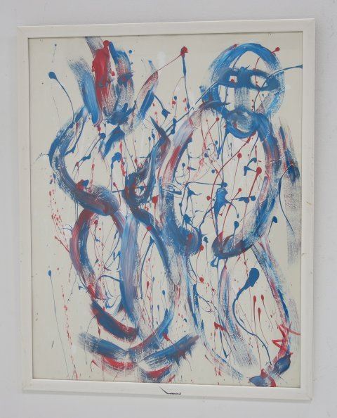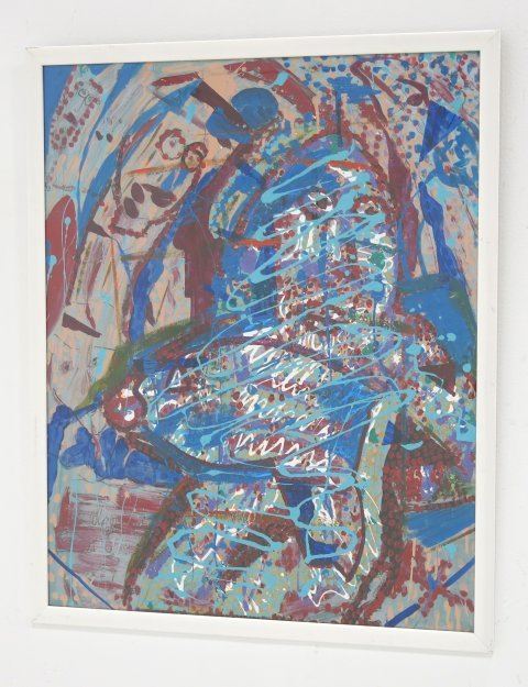 Acrylic on paper. Signed and titled on rear. One dated 1995. Michael Heinrich, American Woodstock Outsider artist (20th century). Approx. 28 1/2" x 22 1/2" unframed, 30" x 24" framed.
