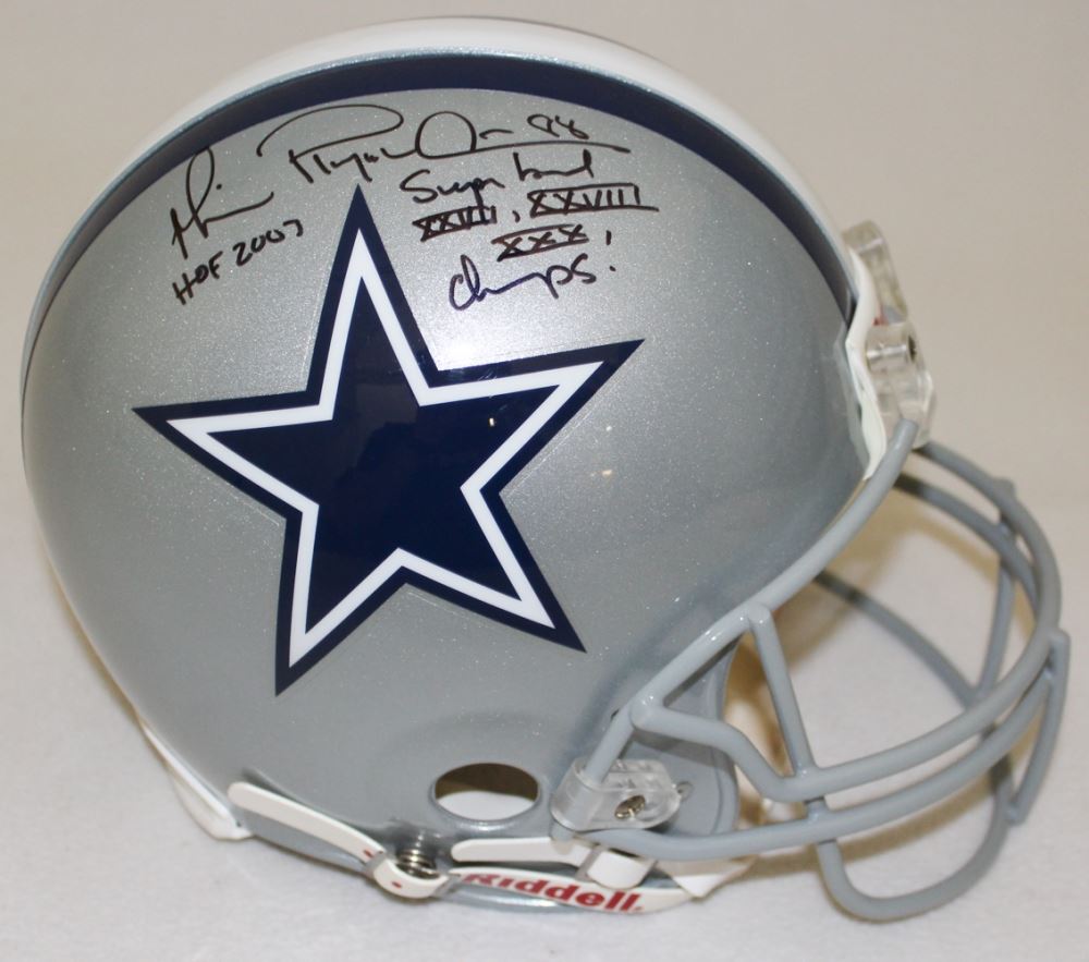 Cowboys full-size authentic proline helmet. Hand-signed in black felt-tip pen by Michael Irvin (HOF).