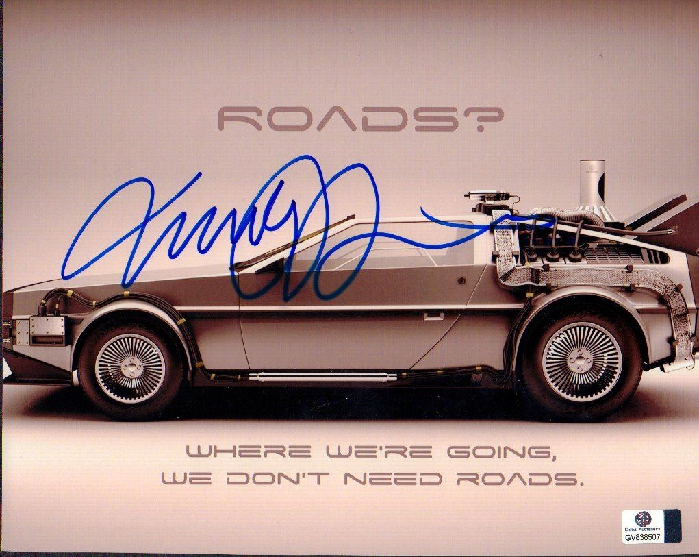 Color 8x10 photo of the famed Delorean used in the film franchise Back to the Future signed by Michael J. Fox. The signature has been certified by Global Authentics and issued number GV838507. All items come with a certificate of authenticity good for the life of the piece.