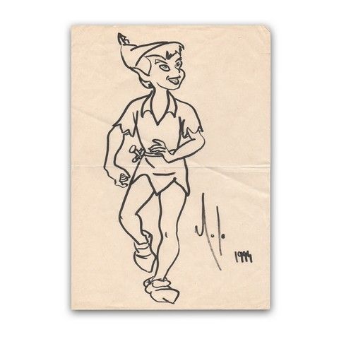 MICHAEL JACKSON ORIGINAL PETER PAN DRAWING 1994 - Original black felt-tip pen sketch of Peter Pan. The drawing shows the King of Pop's hero, Peter Pan, the boy who would never grow up. Initialed and dated by Michael Jackson 1994. (Size: 8 1/8 by 11 4/8 inches, 21 x 29,6 cm)