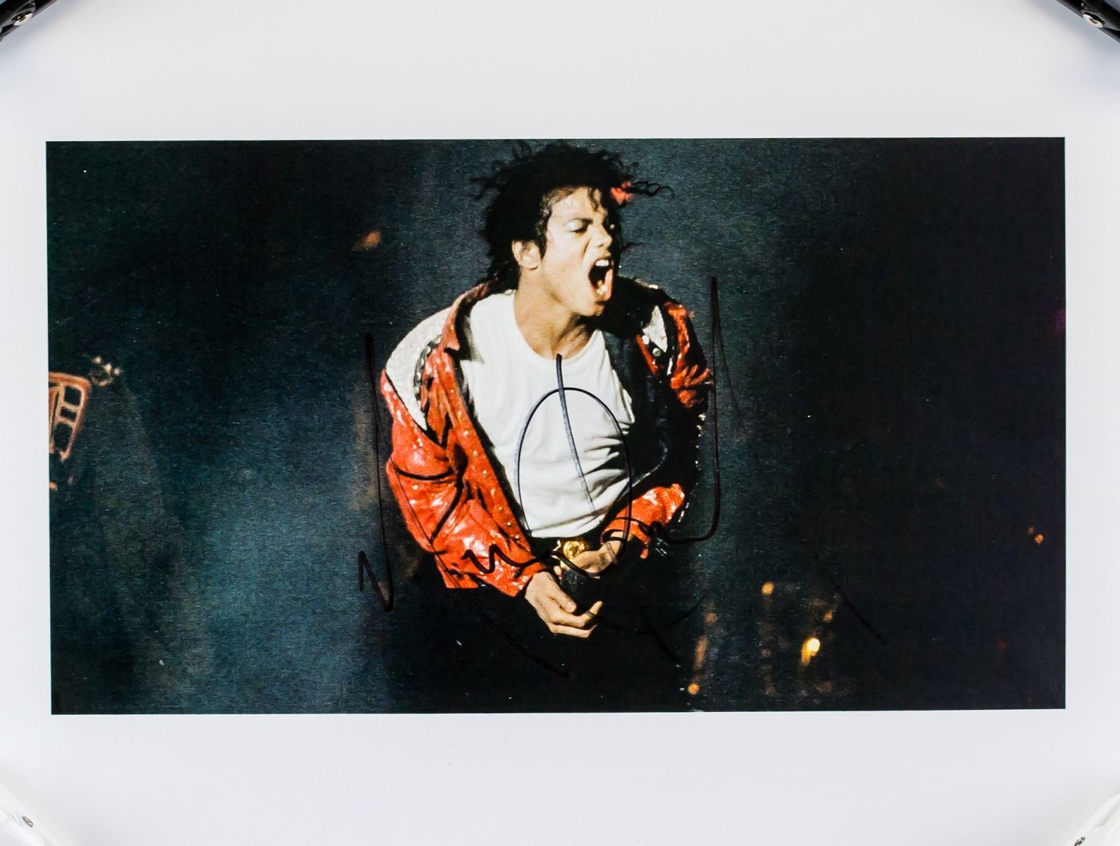 Autographed photograph, signed Michael Jackson (1958-2009, American). Accompanied with a James Spence Authentication JSA Letter of Authenticity. 14 x 25 cm (5.5 x 9.8 inches)