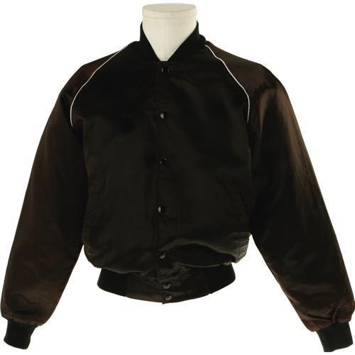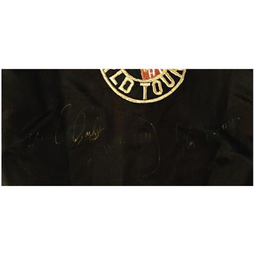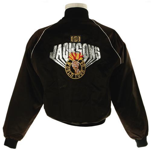 <B>Michael Jackson Autographed Tour Jacket.</B></I> A black satin jacket with "The Jacksons World Tour '84" logo on the back, signed underneath by Michael Jackson in gold autograph pen. Also included is a backstage pass from the tour. Items are in Very Fine to Excellent condition, with some fading to the signature.<BR><BR><b>Shipping:</b> Clothing, Costumes & Jerseys (<a target="_blank" href="http://www.heritageauctions.com/common/shipping.php">view shipping information</a>)