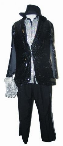 From New York costume designer Frankie Stein comes a custom made Michael Jackson Billy Jean costume. Includes a shining black vest, black pants, eye-catching shirt, a black hat and gloves. Ms. Stein's work has been featured on stage, television, film & print, and she successfully owns and operates "Frankie Steinz" costume shop in New York. As a freelance costume designer, she later moved her business to New York City where her many clients include ABC, Sony, Disney and HBO, and celebrities Robert De Niro, Billy Joel and Dolly Parton, to name a few. Her work has been featured in The New York Times, Time Out magazine and People Online, and has been seen on The David Letterman Show, The View, Saturday Night Live, The Rosie O'Donnell Show, and Everybody Loves Raymond, and she is credited on the major Academy Award winning film 'Eternal Sunshine of the Spotless Mind.'