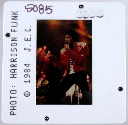 A truly stunning shot showing Michael Jackson in a pre-Thriller pose during a solo concert circa 1980. These photos were commission by Joe Jackson, father, founder and early manager of his children, Michael Jackson and the Jackson 5. He hired the top music concert photographers of the day to take pictures of Michael Jackson and the Jackson Five (both in individual performances and as a group), while they were on tour, and during personal appearances, as well as at family get-together's. The purchase of this photo includes the original transparency, and includes a full copyright release for your own personal unlimited reproduction printing and selling to the winning bidder. They are the original 35 millimeter film used to take the picture, and are professionally mounted in “slide” paper for protection. The original film sprockets can be seen when the paper is removed. The color reversal film was used by these photographers, because, as is standard in the industry, this film stock creates more detailed images especially in Concert and low-light situations, and in many ways is actually superior to color negative film stock for reproduction purposes. Bidders are advised that Jackson Entertainment Corp. and the Estate of Michael Jackson have asserted a claim that they are the owners of the copyright in this photo and/or rights to the reproduction of Michael Jackson’s image. Bidders are advised that all proceeds from sales and delivery of the purchased items will be held by Premiere Props in escrow pending resolution of these claims unless the successful bidders assume the risk.