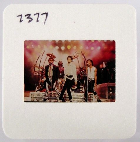 Michael Jackson on Tour circa 1982. These photos were commission by Joe Jackson, father, founder and early manager of his children, Michael Jackson and the Jackson 5. He hired the top music concert photographers of the day to take pictures of Michael Jackson and the Jackson Five (both in individual performances and as a group), while they were on tour, and during personal appearances, as well as at family get-together's. The purchase of this photo includes the original transparency, and includes a full copyright release for your own personal unlimited reproduction printing and selling to the winning bidder. They are the original 35 millimeter film used to take the picture, and are professionally mounted in “slide” paper for protection. The original film sprockets can be seen when the paper is removed. The color reversal film was used by these photographers, because, as is standard in the industry, this film stock creates more detailed images especially in Concert and low-light situations, and in many ways is actually superior to color negative film stock for reproduction purposes. Bidders are advised that Jackson Entertainment Corp. and the Estate of Michael Jackson have asserted a claim that they are the owners of the copyright in this photo and/or rights to the reproduction of Michael Jackson’s image. Bidders are advised that all proceeds from sales and delivery of the purchased items will be held by Premiere Props in escrow pending resolution of these claims unless the successful bidders assume the risk.
