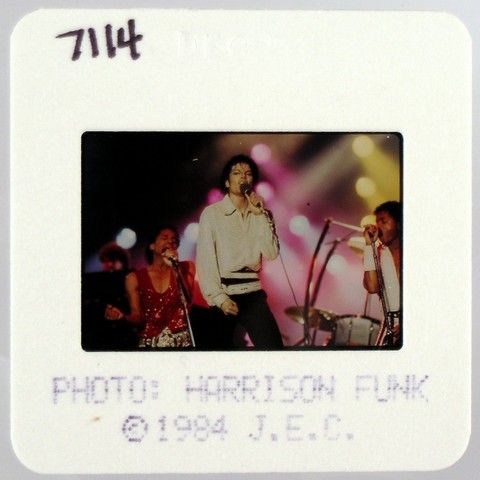 Michael Jackson with strong backup on Tour circa 1983. These photos were commission by Joe Jackson, father, founder and early manager of his children, Michael Jackson and the Jackson 5. He hired the top music concert photographers of the day to take pictures of Michael Jackson and the Jackson Five (both in individual performances and as a group), while they were on tour, and during personal appearances, as well as at family get-together's. The purchase of this photo includes the original transparency, and includes a full copyright release for your own personal unlimited reproduction printing and selling to the winning bidder. They are the original 35 millimeter film used to take the picture, and are professionally mounted in “slide” paper for protection. The original film sprockets can be seen when the paper is removed. The color reversal film was used by these photographers, because, as is standard in the industry, this film stock creates more detailed images especially in Concert and low-light situations, and in many ways is actually superior to color negative film stock for reproduction purposes. Bidders are advised that Jackson Entertainment Corp. and the Estate of Michael Jackson have asserted a claim that they are the owners of the copyright in this photo and/or rights to the reproduction of Michael Jackson’s image. Bidders are advised that all proceeds from sales and delivery of the purchased items will be held by Premiere Props in escrow pending resolution of these claims unless the successful bidders assume the risk.
