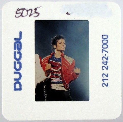 A beautiful photo of Michael Jackson showing his strength during the Victory Tour circa 1984. These photos were commission by Joe Jackson, father, founder and early manager of his children, Michael Jackson and the Jackson 5. He hired the top music concert photographers of the day to take pictures of Michael Jackson and the Jackson Five (both in individual performances and as a group), while they were on tour, and during personal appearances, as well as at family get-together's. The purchase of this photo includes the original transparency, and includes a full copyright release for your own personal unlimited reproduction printing and selling to the winning bidder. They are the original 35 millimeter film used to take the picture, and are professionally mounted in “slide” paper for protection. The original film sprockets can be seen when the paper is removed. The color reversal film was used by these photographers, because, as is standard in the industry, this film stock creates more detailed images especially in Concert and low-light situations, and in many ways is actually superior to color negative film stock for reproduction purposes. Bidders are advised that Jackson Entertainment Corp. and the Estate of Michael Jackson have asserted a claim that they are the owners of the copyright in this photo and/or rights to the reproduction of Michael Jackson’s image. Bidders are advised that all proceeds from sales and delivery of the purchased items will be held by Premiere Props in escrow pending resolution of these claims unless the successful bidders assume the risk.
