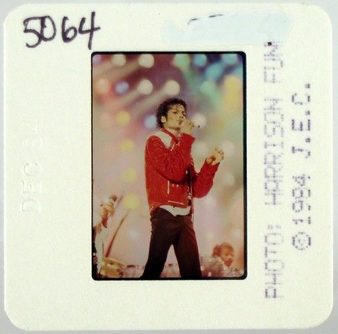 Michael Jackson listening to the roar of the crowd during his Victory Tour circa 1984. These photos were commission by Joe Jackson, father, founder and early manager of his children, Michael Jackson and the Jackson 5. He hired the top music concert photographers of the day to take pictures of Michael Jackson and the Jackson Five (both in individual performances and as a group), while they were on tour, and during personal appearances, as well as at family get-together's. The purchase of this photo includes the original transparency, and includes a full copyright release for your own personal unlimited reproduction printing and selling to the winning bidder. They are the original 35 millimeter film used to take the picture, and are professionally mounted in “slide” paper for protection. The original film sprockets can be seen when the paper is removed. The color reversal film was used by these photographers, because, as is standard in the industry, this film stock creates more detailed images especially in Concert and low-light situations, and in many ways is actually superior to color negative film stock for reproduction purposes. Bidders are advised that Jackson Entertainment Corp. and the Estate of Michael Jackson have asserted a claim that they are the owners of the copyright in this photo and/or rights to the reproduction of Michael Jackson’s image. Bidders are advised that all proceeds from sales and delivery of the purchased items will be held by Premiere Props in escrow pending resolution of these claims unless the successful bidders assume the risk.