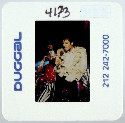 Michael Jackson, center stage, jamming with his brothers on their famous world-wide Victory Tour circa 1984. These photos were commission by Joe Jackson, father, founder and early manager of his children, Michael Jackson and the Jackson 5. He hired the top music concert photographers of the day to take pictures of Michael Jackson and the Jackson Five (both in individual performances and as a group), while they were on tour, and during personal appearances, as well as at family get-together's. The purchase of this photo includes the original transparency, and includes a full copyright release for your own personal unlimited reproduction printing and selling to the winning bidder. They are the original 35 millimeter film used to take the picture, and are professionally mounted in “slide” paper for protection. The original film sprockets can be seen when the paper is removed. The color reversal film was used by these photographers, because, as is standard in the industry, this film stock creates more detailed images especially in Concert and low-light situations, and in many ways is actually superior to color negative film stock for reproduction purposes. Bidders are advised that Jackson Entertainment Corp. and the Estate of Michael Jackson have asserted a claim that they are the owners of the copyright in this photo and/or rights to the reproduction of Michael Jackson’s image. Bidders are advised that all proceeds from sales and delivery of the purchased items will be held by Premiere Props in escrow pending resolution of these claims unless the successful bidders assume the risk.