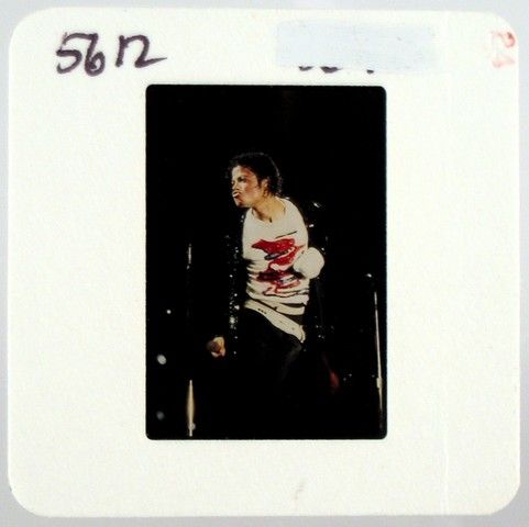 Michael Jackson goes into one of his famous trances while performing on the Victory Tour circa 1984. These photos were commission by Joe Jackson, father, founder and early manager of his children, Michael Jackson and the Jackson 5. He hired the top music concert photographers of the day to take pictures of Michael Jackson and the Jackson Five (both in individual performances and as a group), while they were on tour, and during personal appearances, as well as at family get-together's. The purchase of this photo includes the original transparency, and includes a full copyright release for your own personal unlimited reproduction printing and selling to the winning bidder. They are the original 35 millimeter film used to take the picture, and are professionally mounted in “slide” paper for protection. The original film sprockets can be seen when the paper is removed. The color reversal film was used by these photographers, because, as is standard in the industry, this film stock creates more detailed images especially in Concert and low-light situations, and in many ways is actually superior to color negative film stock for reproduction purposes. Bidders are advised that Jackson Entertainment Corp. and the Estate of Michael Jackson have asserted a claim that they are the owners of the copyright in this photo and/or rights to the reproduction of Michael Jackson’s image. Bidders are advised that all proceeds from sales and delivery of the purchased items will be held by Premiere Props in escrow pending resolution of these claims unless the successful bidders assume the risk.
