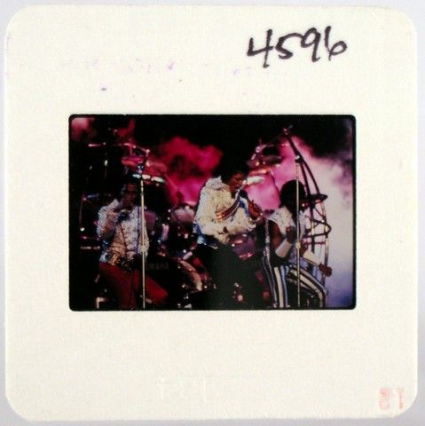 The heat is one, and the stage virtually erupts into fire as Michael Jackson and his brothers go all out during their world-wind reunion Victory Tour circa1984. These photos were commission by Joe Jackson, father, founder and early manager of his children, Michael Jackson and the Jackson 5. He hired the top music concert photographers of the day to take pictures of Michael Jackson and the Jackson Five (both in individual performances and as a group), while they were on tour, and during personal appearances, as well as at family get-together's. The purchase of this photo includes the original transparency, and includes a full copyright release for your own personal unlimited reproduction printing and selling to the winning bidder. They are the original 35 millimeter film used to take the picture, and are professionally mounted in “slide” paper for protection. The original film sprockets can be seen when the paper is removed. The color reversal film was used by these photographers, because, as is standard in the industry, this film stock creates more detailed images especially in Concert and low-light situations, and in many ways is actually superior to color negative film stock for reproduction purposes. Bidders are advised that Jackson Entertainment Corp. and the Estate of Michael Jackson have asserted a claim that they are the owners of the copyright in this photo and/or rights to the reproduction of Michael Jackson’s image. Bidders are advised that all proceeds from sales and delivery of the purchased items will be held by Premiere Props in escrow pending resolution of these claims unless the successful bidders assume the risk.